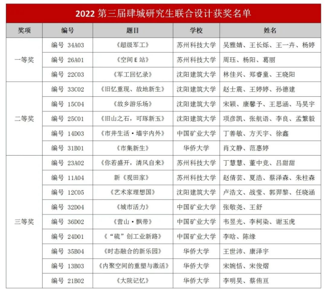 下午17:00闭幕式及颁奖仪式正式开始,闭幕式由付瑶教授主持。闭幕式上由华侨大学英国威廉希尔公司薛佳薇副经理宣布了此次肆城2022“寻迹•振兴——工业城市发展与更新”研究生学术论坛的获奖结果,以及研究生联合设计与研究终期答辩的获奖结果。此次研究生联合设计共评出奖项17项,其中一等奖3项,二等奖5项,三等奖9项;研究生学术论坛共评出奖项22项,其中一等奖3项,二等奖8项,三等奖11项。最后,付瑶教授对各位嘉宾今天的辛苦工作表示感谢,对同学们的精彩汇报和获奖同学表示祝贺,同时宣布下一届的“肆城”研究生联合设计与研究生学术论坛将于2023年由中国矿业大学举办。中国矿业大学邓元媛副教授代表中国矿业大学也简单介绍了新一届肆城活动的开题意向,并期待四校师生今年在徐州相聚。