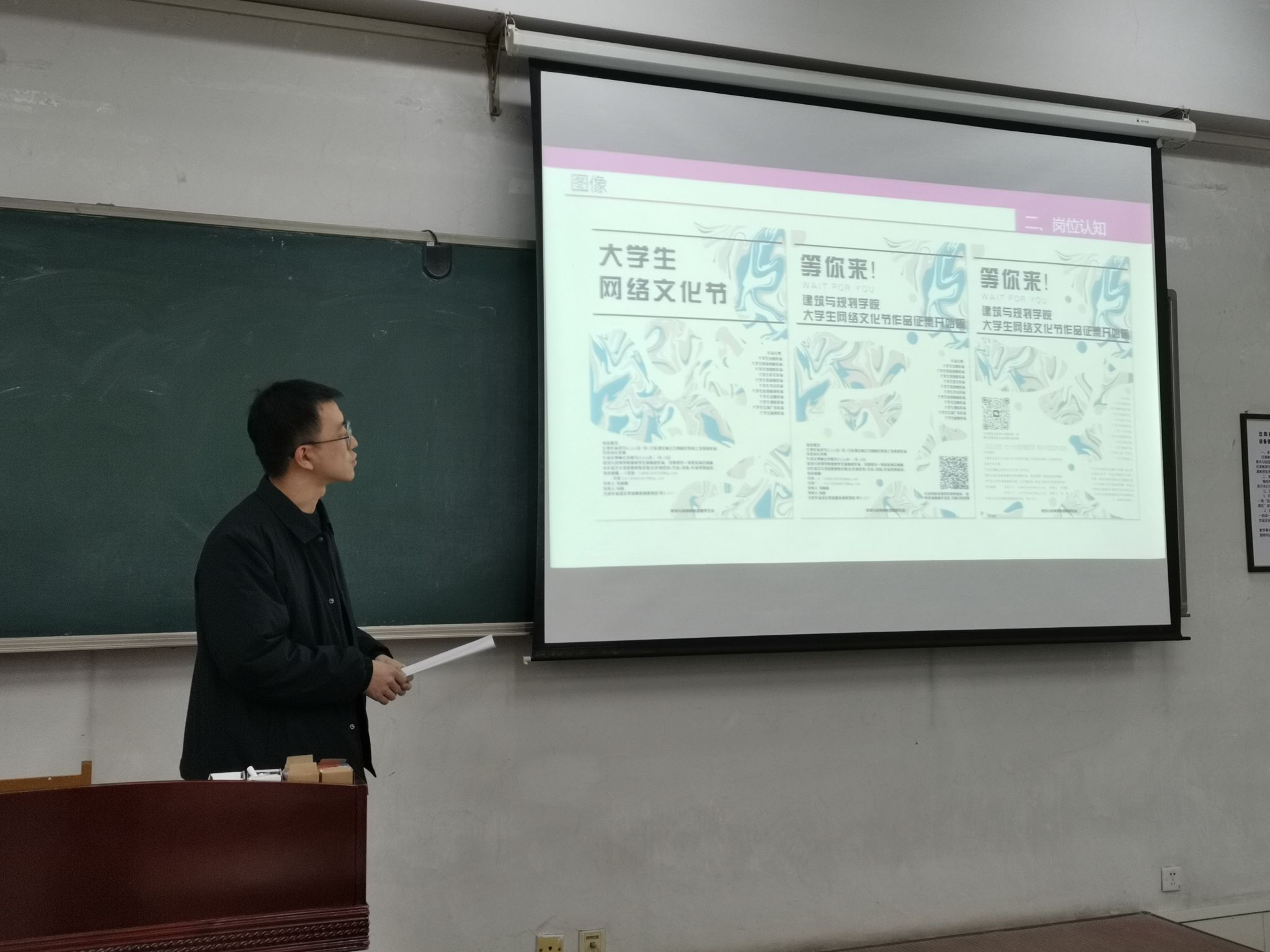 培训伊始,参会成员依次进行了自我介绍,促进易班宣传中心成员们之间的相互了解与沟通。随后,老师从自我介绍出发,结合老员工网络文化节的前期工作与近期中心工作实际案例,围绕文字、图像、呈现等三个方面,从通讯撰写的结构、海报设计的排布、照片拍摄的角度以及信息呈现的平台等角度进行了详细的讲解。