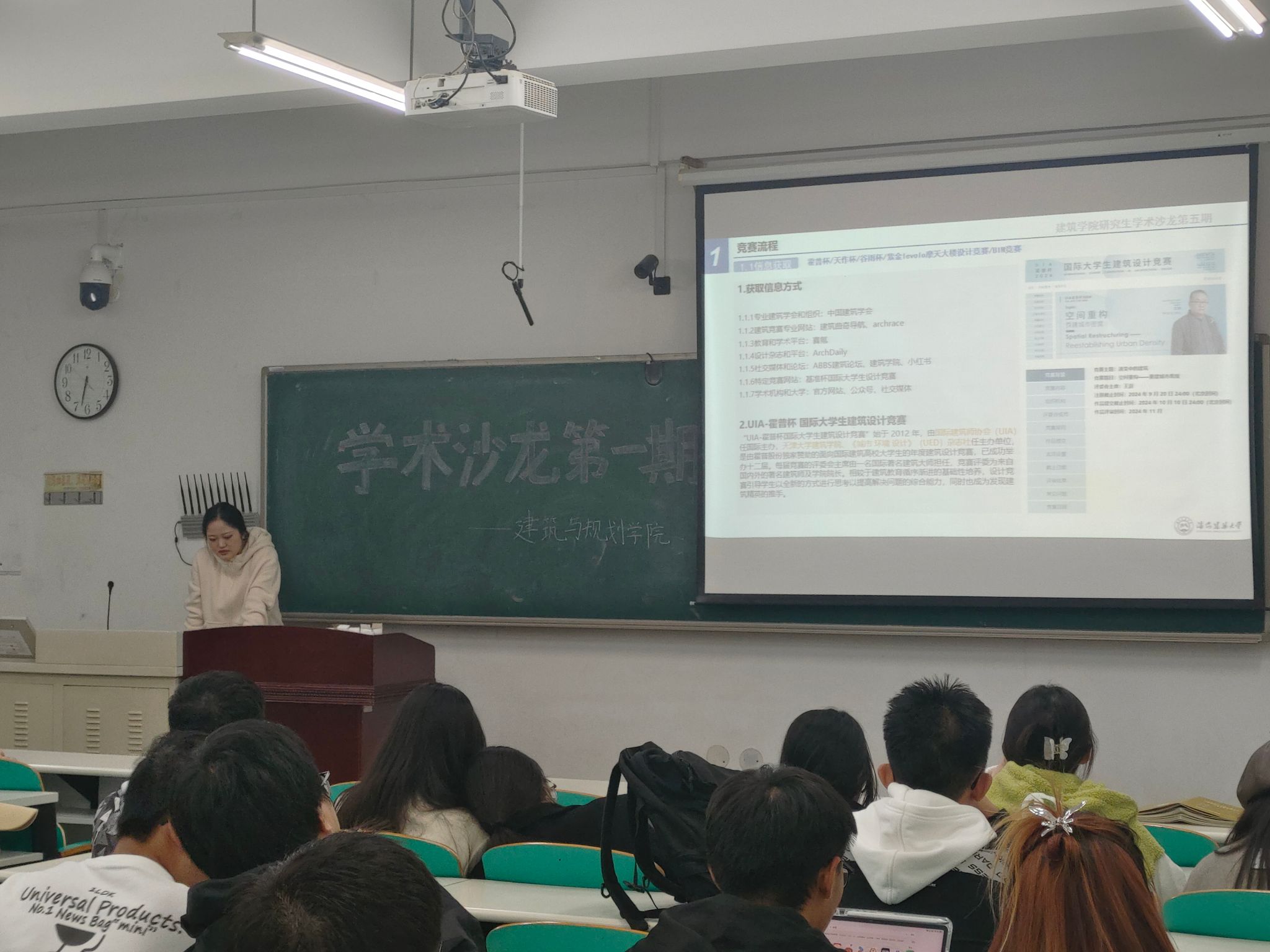 活动中,王丽杰、罗承旭、雷星亮、李轩仪、卢相羽等5位主讲同学以“建筑学科竞赛设计作品及经验分享”为主题,结合自身的实际经历,通过对本公司学科、多彩校园生活、各自参与竞赛案例的详尽介绍,包括绿色建筑设计、适老化设计、肆城竞赛、谷雨杯等竞赛,为新生提供了丰富的经验和宝贵的参考,讲解深入浅出,讨论激昂热烈。