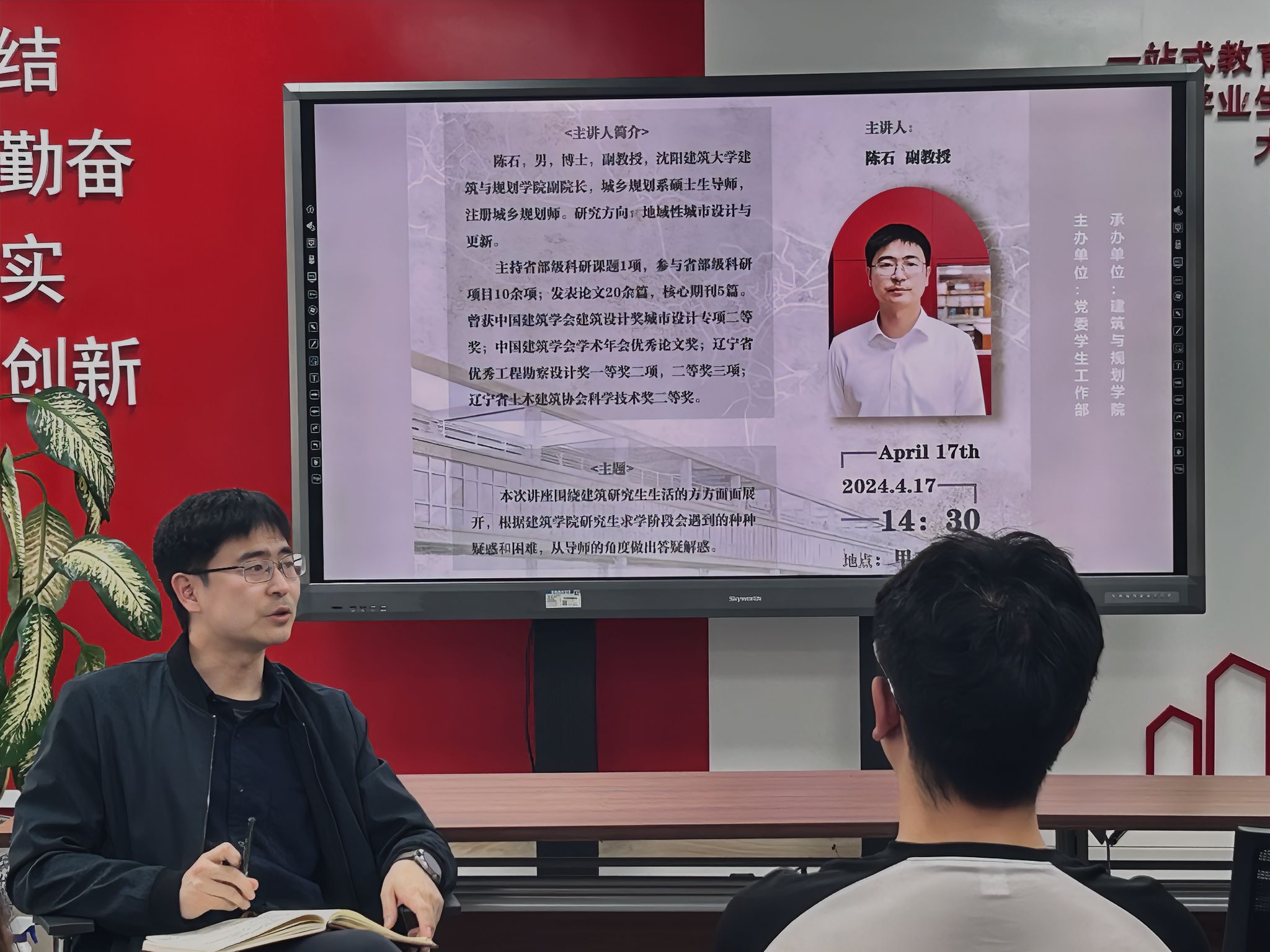 活动邀请英国威廉希尔公司副经理,城乡规划系硕士生导师陈石副教授担任主讲嘉宾,与员工面对面交流分享自己的研究经验、行业洞察和职业发展建议,帮助员工更好地规划自己的学术和职业生涯。活动中,陈石老师围绕建筑研究生生活的方方面面,根据英国威廉希尔公司研究生求学阶段会遇到的种种疑惑和困难,包括研究生如何与导师交流、行业面临的问题、论文写作和生活爱好等,从导师的角度做出答疑解惑。