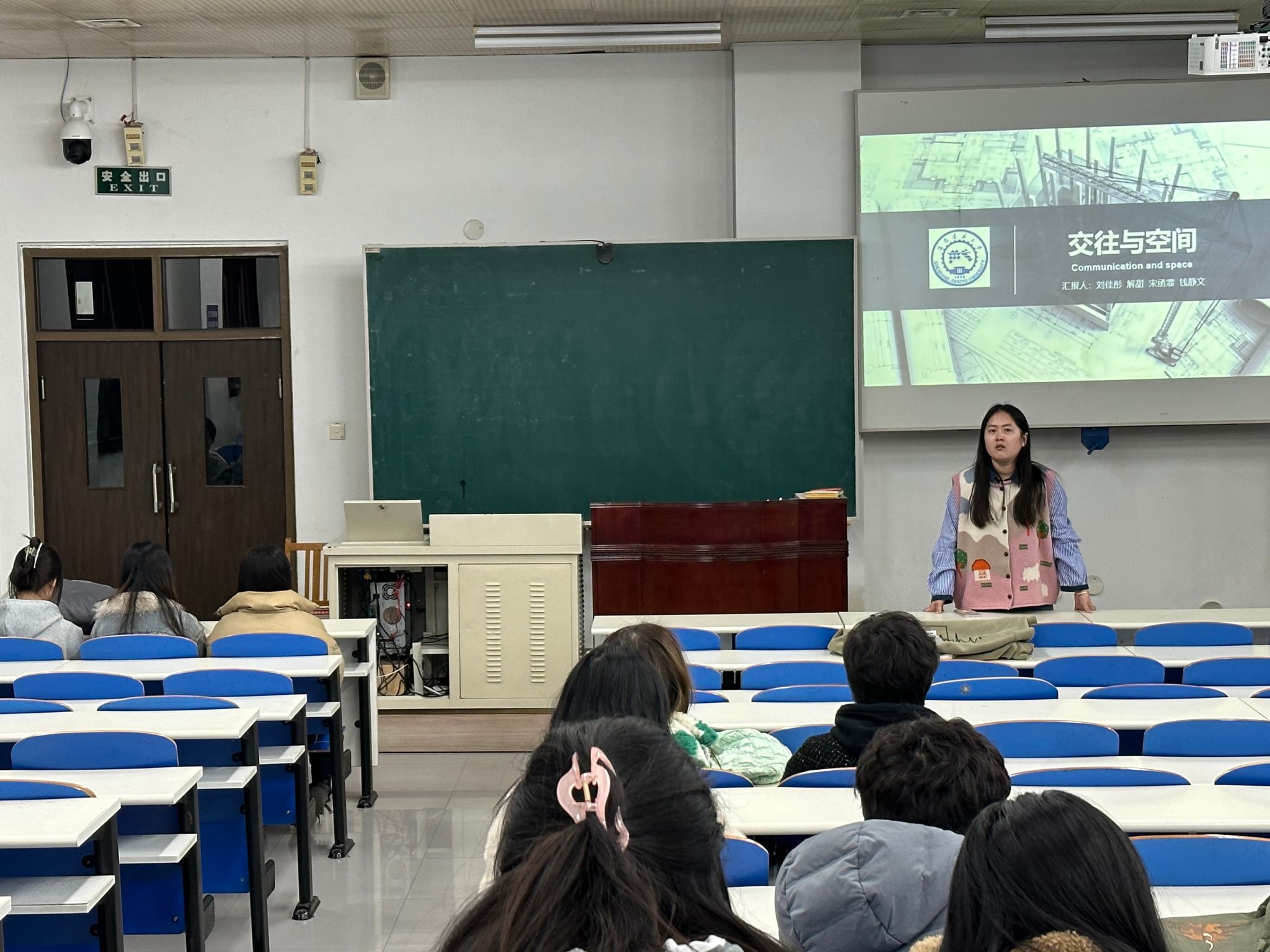 活动中,四位主讲同学围绕“交往与空间”探讨城市空间对人行为的引导。主讲同学们在分享中通过分析人的生物学特点等,推导出适宜人使用的城市空间,并指出户外活动是人活动的重要组成部分,应通过诸多元素对其进行改善优化,并提出规划是一个宏观微观因素交叉考虑的过程,简化来说可以是社会关系和个体感受。