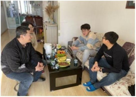 最后来到了风景园林专业魏鑫洋家中,家访过程中,魏鑫洋母亲对我们的工作表达了感谢,并表示魏鑫洋在入学之后,明显成长了很多,不论为人处世还是生活能力方面都有了很大的提升。并且十分热爱所学专业。关于老员工活,辅导员老师也提出了建议,大学在认真学习的同时,也希望孩子能多出去走一走,了解不同文化、地理、政治因素下的设计模式。