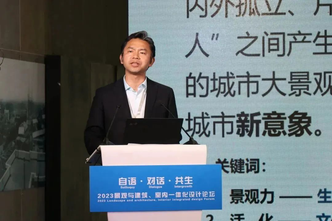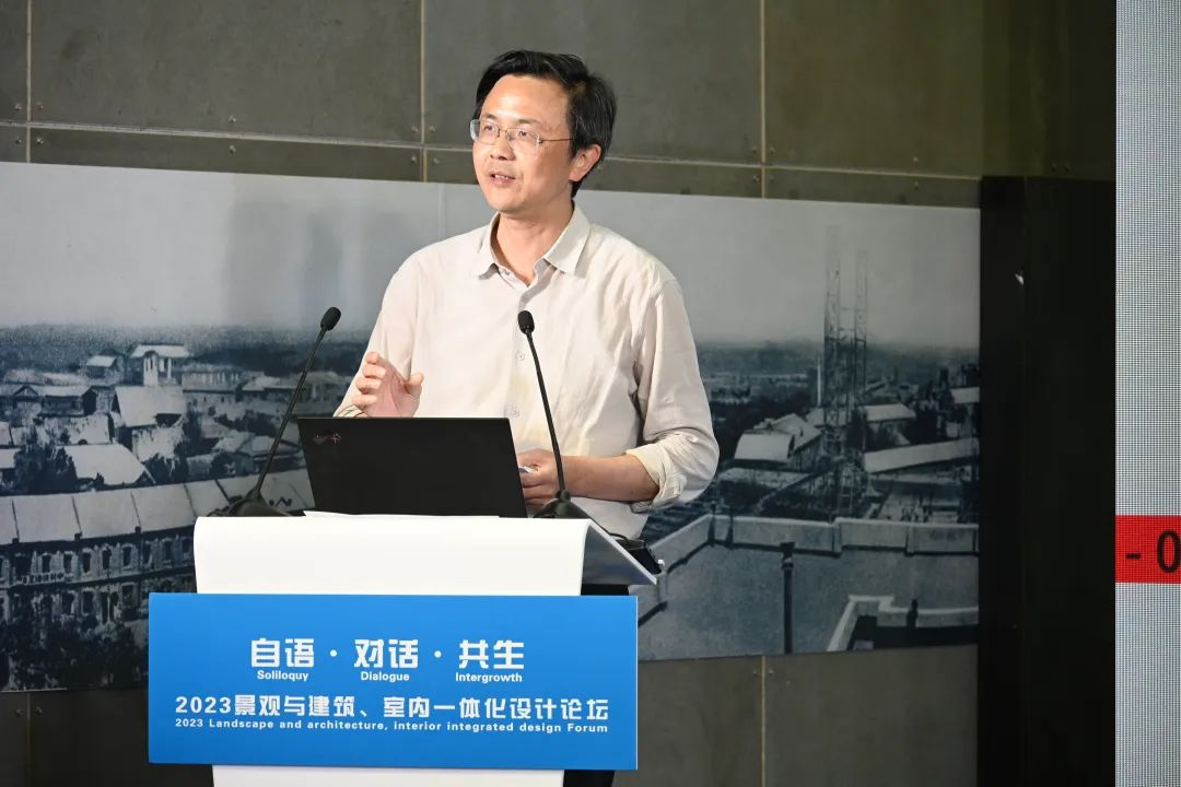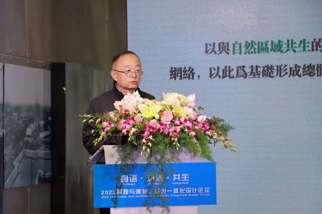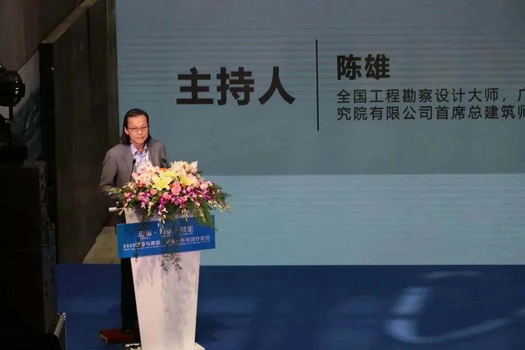 首场学术报告由全国工程勘察设计大师、广东省建筑设计研究院有限公司首席总建筑师陈雄主持。陈雄指出,本次论坛以“自语·对话·共生”为主题,意在说明建筑内外与景观环境之间的内在关联,从自我突破完善到打破二者间的边界,最终实现景观、建筑、室内的融合发展。