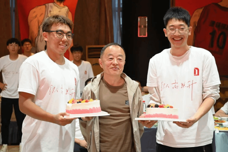 张老与刘叶青老师同时为D1篮球队切纪念蛋糕