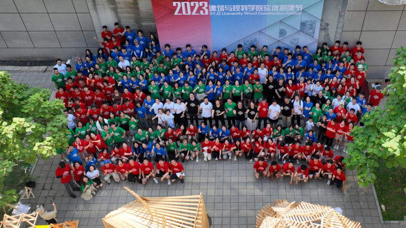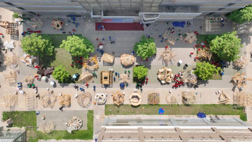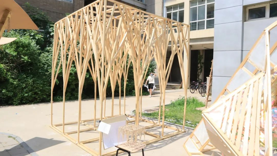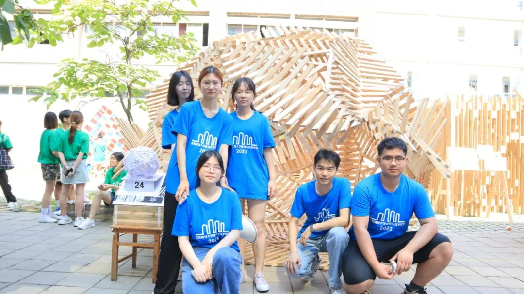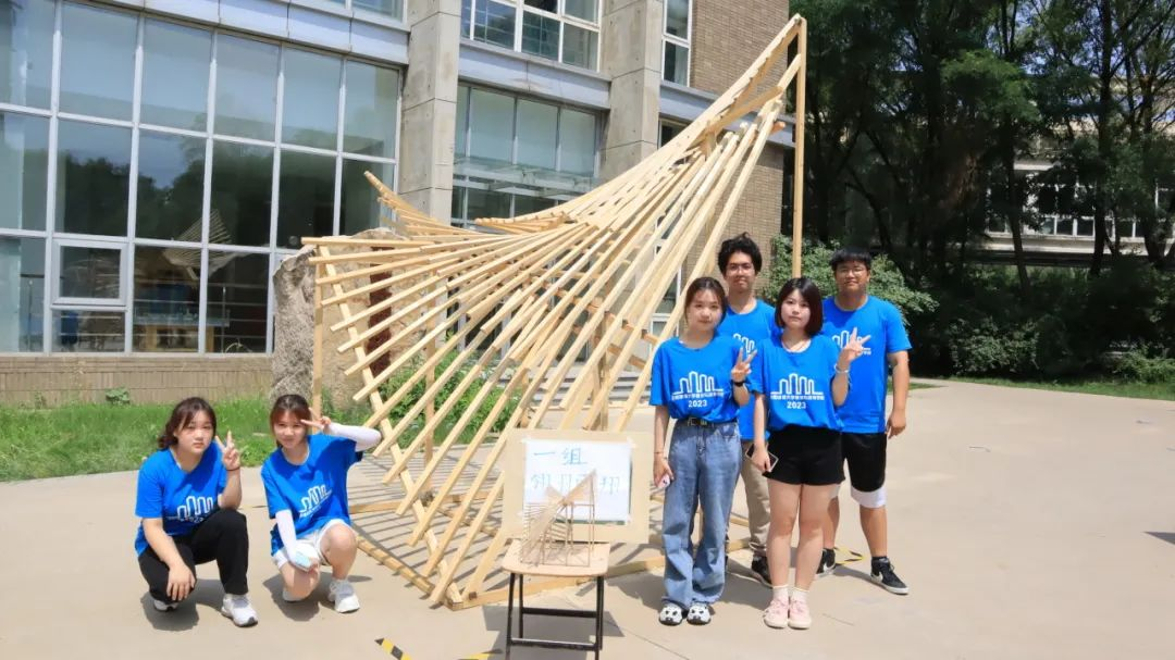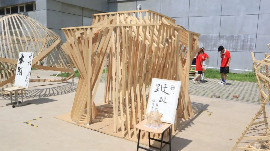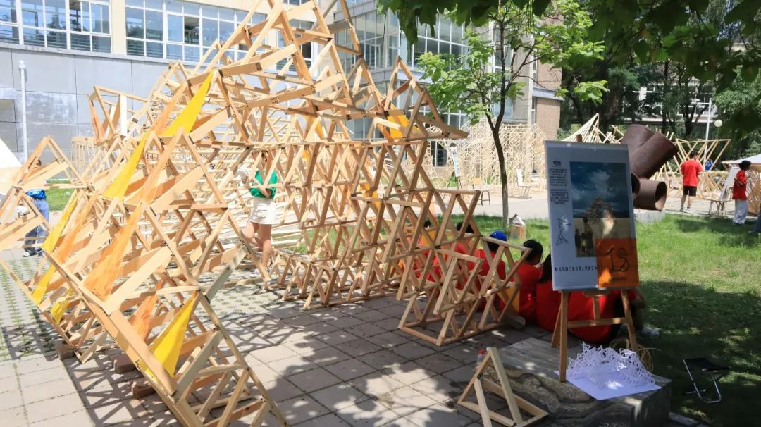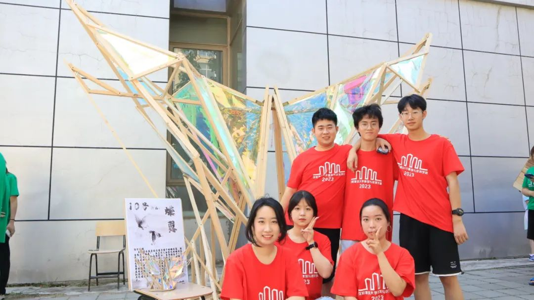 各代表队在搭建竞赛现场中争分夺秒,全力以赴,力求完成满意的作品。尽管搭建期间受到雷雨和酷暑影响,但各小组克服重重困难,互帮互助,最终将设计方案顺利建成落地。追求源于热爱,热爱成就追求。建院学子们将设计成果精益求精的追求成就了一份份佳作,成就了一张张笑颜。