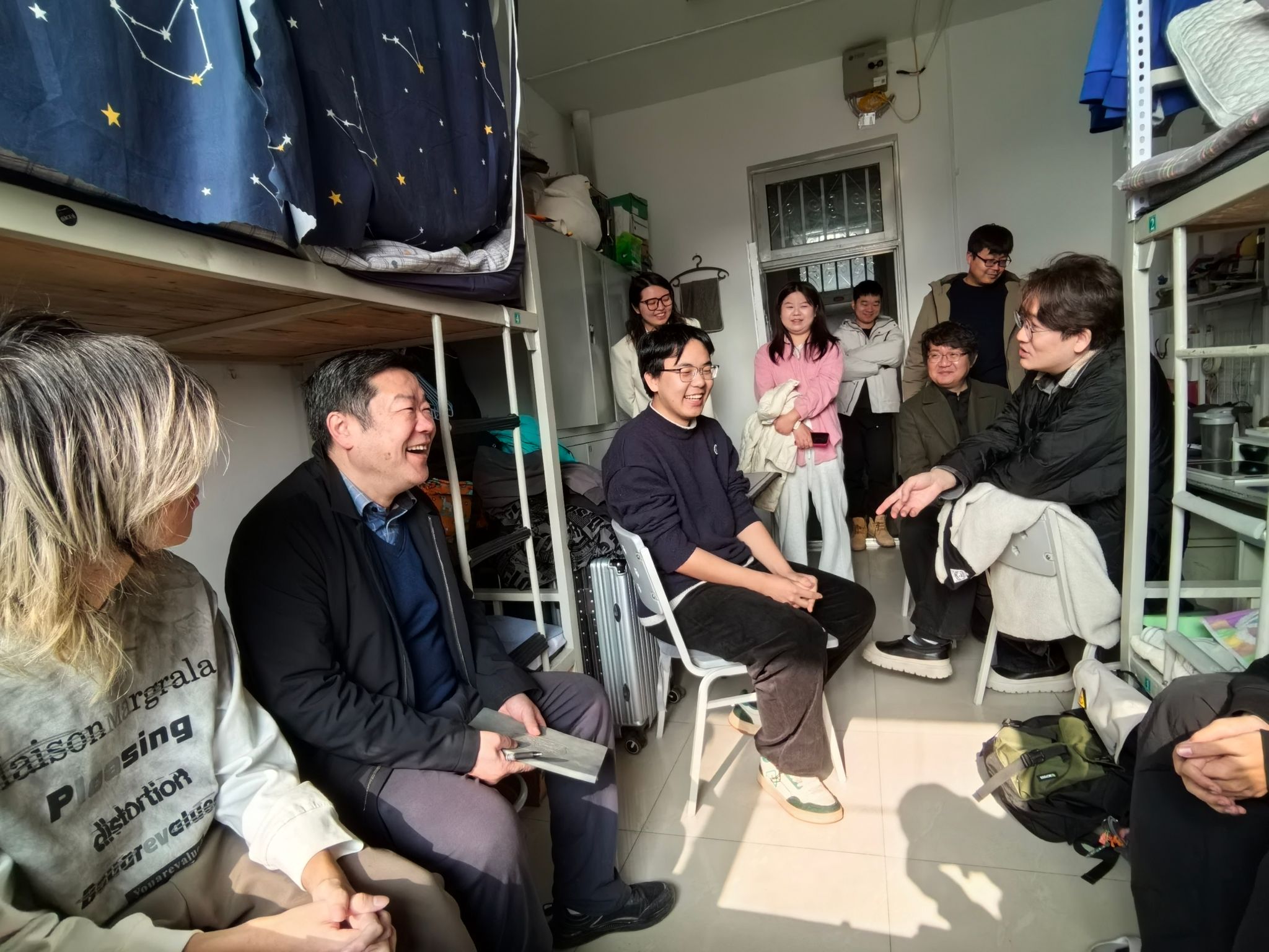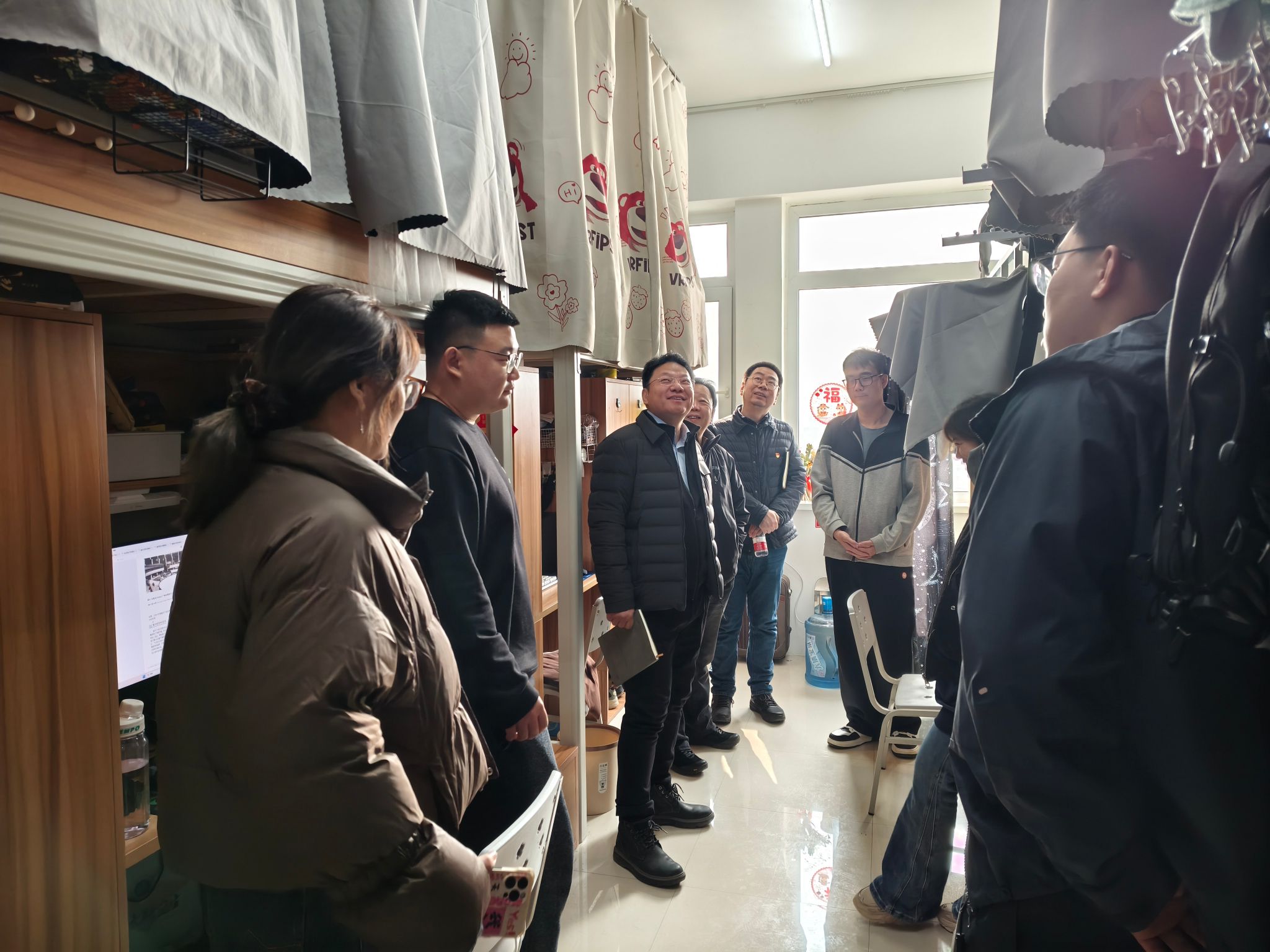 公司党委书记蔡新冬、建筑博物馆馆长张群、建筑博物馆副馆长刘万里、教师张蔷蔷深入研究生寝室,开展走访关怀活动。走访期间,蔡书记与员工展开亲切交谈,仔细询问大家的学习和生活情况,以及员工们对于宿舍的各种需求,并仔细查看宿舍设施情况,叮嘱员工注意防火与用电安全。同时强调,春季是流感高发季节,告诫同学们要注意宿舍卫生,及时开窗通风。