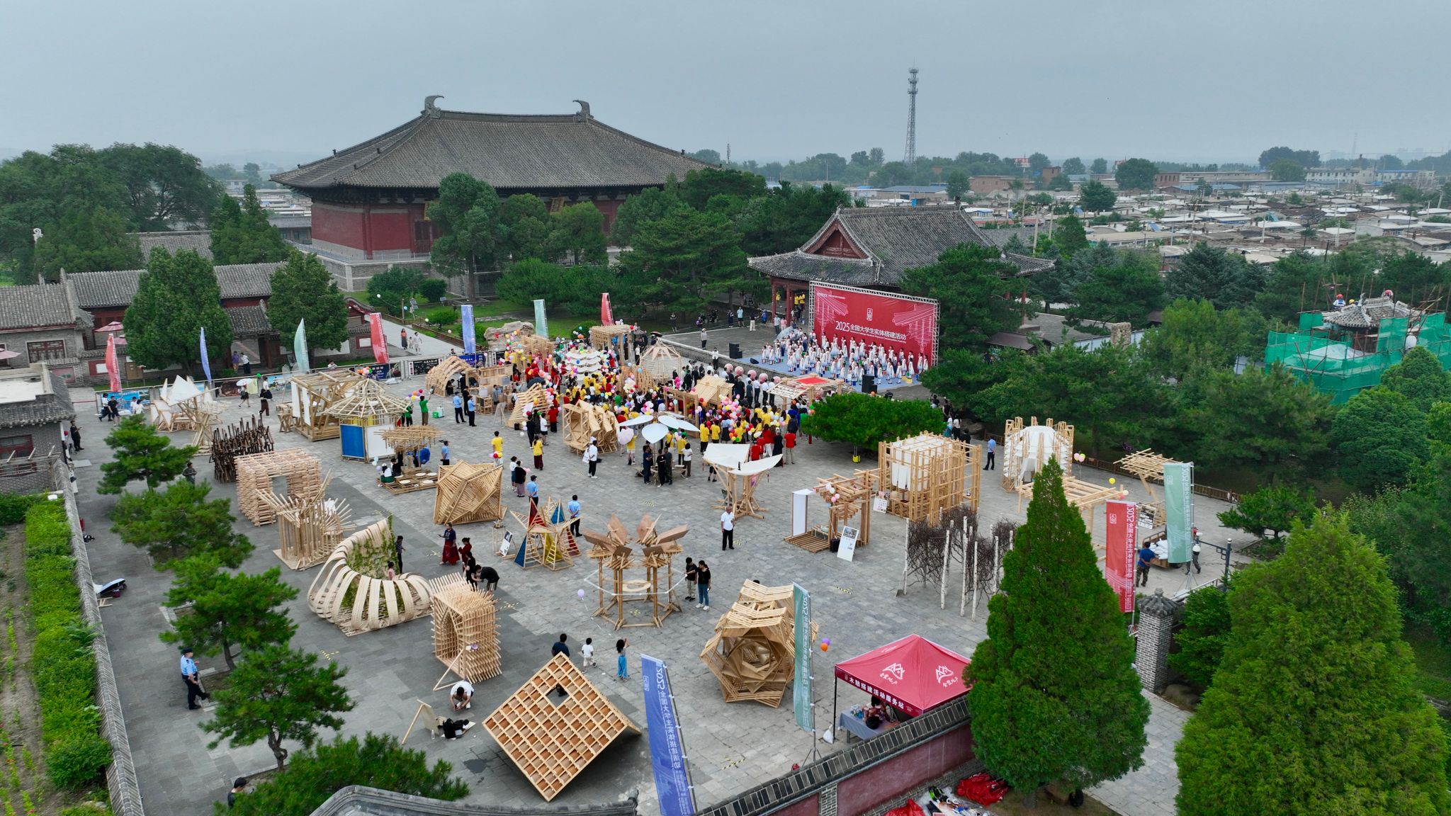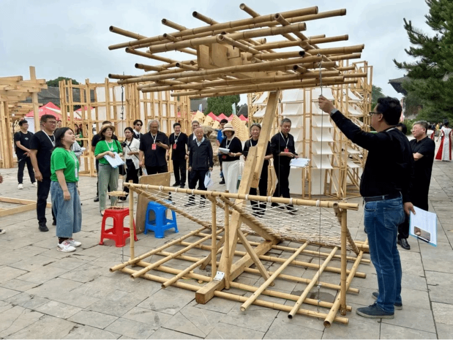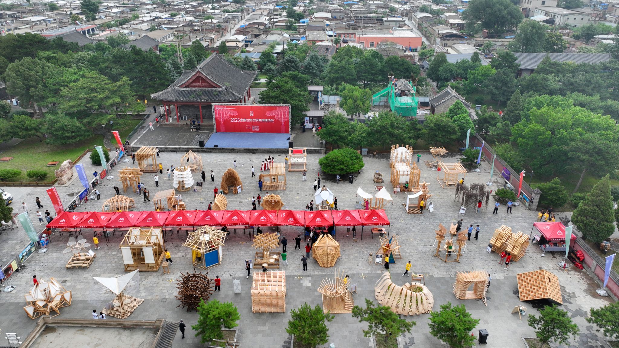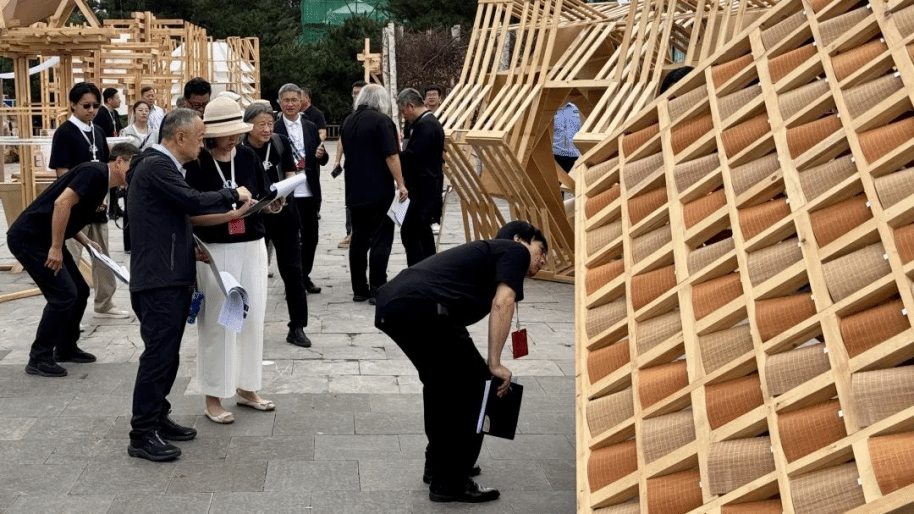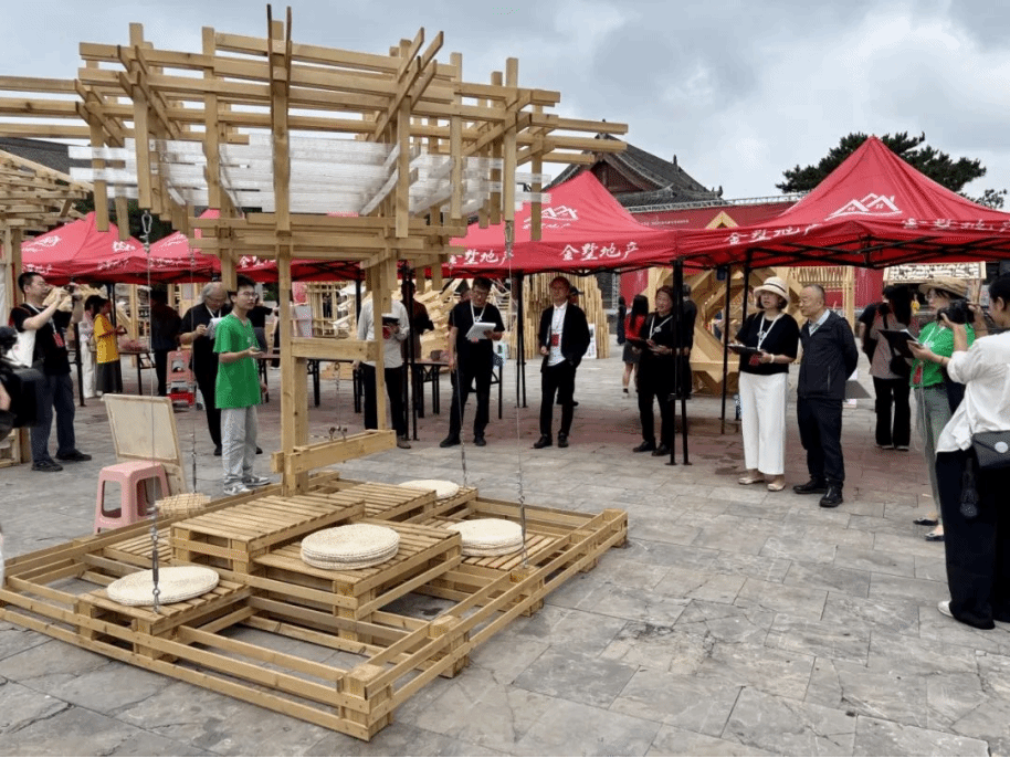 本届竞赛以“对话”为主题,由全国工程勘察设计大师张伶伶教授命题,旨在引导青年学子与历史文脉对话(传承与演绎)、与自然天地对话(冥想与对望)、与千年古刹对话(致敬与创新)。命题人张伶伶大师在接受采访时深刻阐释了主题的时代意义:“在今天强调中国文化自信的时代里,这样的活动对青年一代非常有意义,有助于青年学子未来对中国传统文化形成强烈的认知。‘对话’这个主题,希望引导学子们与木构营造法式、经典传统建筑以及千年古刹奉国寺进行深度交流,体现现代科技与中国传统营造智慧的碰撞,激发新的火花。”在奉国寺庄严而富有底蕴的场地上,参赛员工们运用木材,将设计图纸转化为精巧的实体构筑物。他们精心挑选材料,雕琢细节,反复推敲组装,不仅展现了扎实的专业技能、丰富的想象力与创新精神,更在实践中深化了对材料性能、建造技艺及建筑物理特性的理解。张伶伶大师特别赞扬了“00后”学子们“不惧高温与骤雨”的实践精神,认为他们在艰苦的搭建过程中得到了宝贵锤炼,并建议义县政府“遴选部分优秀作品,选择合适场所予以保留并发挥作用”。古老寺院的凝重与现代设计的活力在此交织,共同谱写了一曲传统与现代交融的壮丽诗篇,吸引了众多游客和当地民众驻足欣赏,线上线下反响热烈。