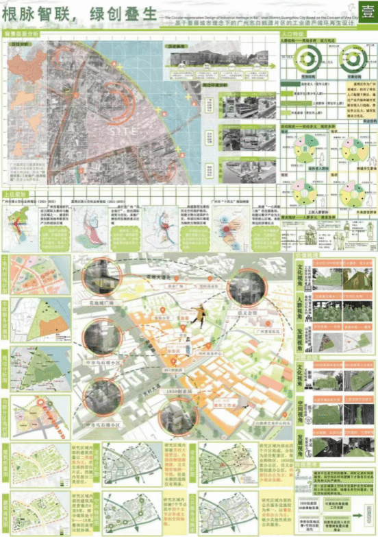 作品名称:根脉智联·绿创叠生——基于蔓藤城市理念下的广州市白鹅潭片区的工业遗产青年力激活计划