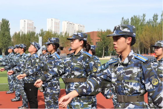 军姿挺拔,行列整齐,步伐一致,口号统一。在烈日和急雨的“关照”下,在肌肉酸痛与内心煎熬的“劝降”中,在充实的作息和严厉的教官的“催促”下,建院学子用汗水和坚持磨砺出坚韧的品质,顽强的意志和不屈的斗志,跟随着“稍息,立正,齐步走”的口令,踏出属于青春的最铿锵有力的步伐。五星红旗下,一袭迷彩蓝,建院的连队永远是训练场上最难以移开视线的风景。