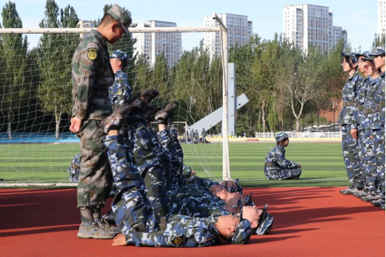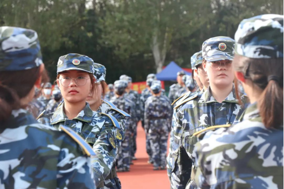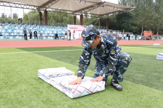 平平整整的军装,方方正正的军被,规规矩矩的军容,细致严格的军训要求与规定让新生离开了在亲人和家庭关照下的“舒适圈”,教会他们自立、自律、自强。